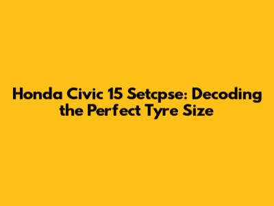 The Honda Civic 15 Setcpse Tyre Size: What You Need to Know