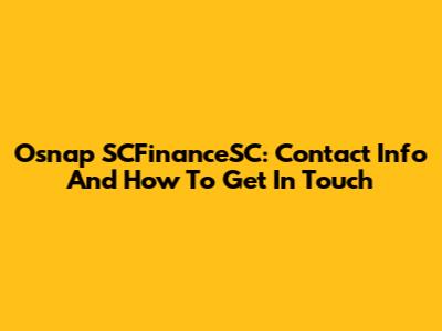 Osnap SCFinanceSC: Contact Info And How To Get In Touch