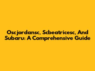 Oscjordansc, Scbeatricesc, And Subaru: A Comprehensive Guide