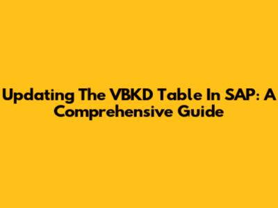 Updating The VBKD Table In SAP: A Comprehensive Guide