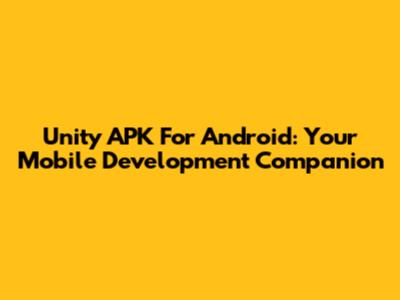 Unity APK For Android: Your Mobile Development Companion