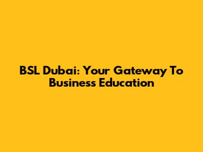 BSL Dubai: Your Gateway To Business Education