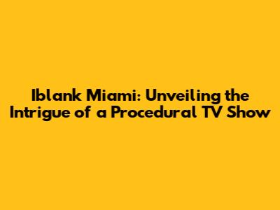 Hey guys, have you ever found yourself completely hooked on a TV show that just pulls you in, episode after episode? Well, get ready, because we're diving deep into the world of Iblank Miami, a procedural TV show that's got everything you could want: a thrilling Miami setting, complex investigations, and characters you'll actually care about. If you're a fan of crime dramas and love getting lost in the details of a good mystery, then buckle up! We are going to explore what makes this show so captivating, from its gripping storylines to the behind-the-scenes magic that brings it all to life. Let's get started, shall we?