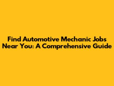 Find Automotive Mechanic Jobs Near You: A Comprehensive Guide