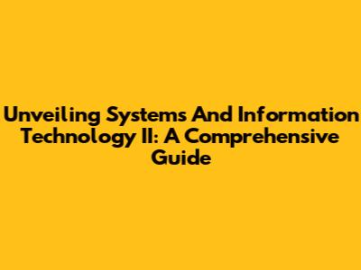 Unveiling Systems And Information Technology II: A Comprehensive Guide
