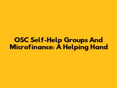 OSC Self-Help Groups And Microfinance: A Helping Hand