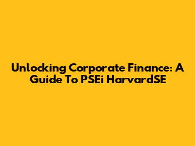 Unlocking Corporate Finance: A Guide To PSEi HarvardSE