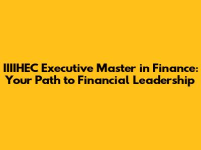 What Exactly is the IIIIHEC Executive Master in Finance?