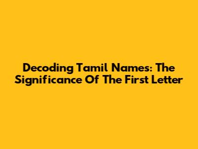 Decoding Tamil Names: The Significance Of The First Letter