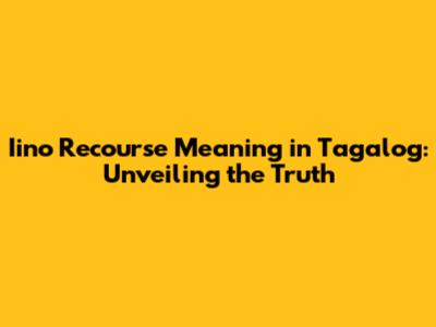 I hope this article helps you understand the meaning of iino recourse in Tagalog. If you have any questions, feel free to ask! Enjoy and have a great time! Mabuhay!