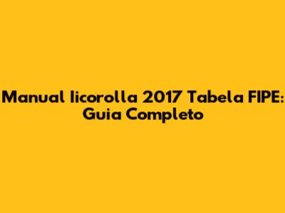 Manual Iicorolla 2017 Tabela FIPE: Guia Completo
