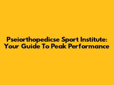 Pseiorthopedicse Sport Institute: Your Guide To Peak Performance