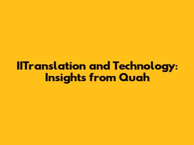 In conclusion, iitranslation and technology are inextricably linked, with technology playing an increasingly important role in enhancing the efficiency, accuracy, and accessibility of translation services. Quah's insights highlight the importance of embracing technology while also recognizing the value of human expertise. As technology continues to evolve, it will undoubtedly shape the future of iitranslation, creating new opportunities and challenges for translators and businesses alike. The integration of technology into translation has not only made the process faster and more efficient but has also opened up new possibilities for global communication and understanding. From machine translation to computer-assisted translation tools, technology has become an indispensable part of the modern translation landscape.