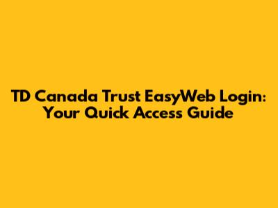 TD Canada Trust EasyWeb Login: Your Quick Access Guide