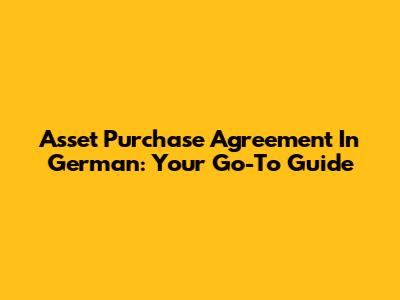 Asset Purchase Agreement In German: Your Go-To Guide