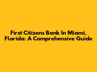 First Citizens Bank In Miami, Florida: A Comprehensive Guide