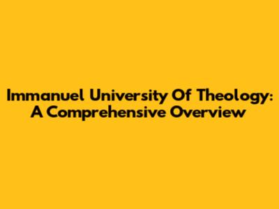Immanuel University Of Theology: A Comprehensive Overview