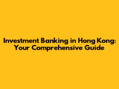 FAQs About Investment Banking in Hong Kong