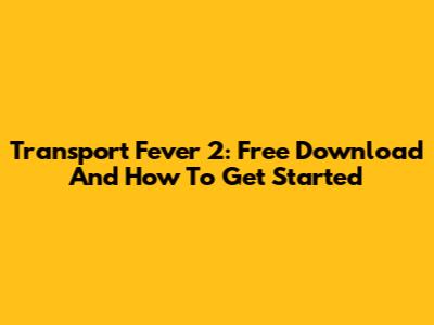 Transport Fever 2: Free Download And How To Get Started