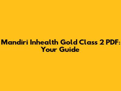 Mandiri Inhealth Gold Class 2 PDF: Your Guide
