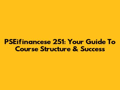 PSEifinancese 251: Your Guide To Course Structure & Success