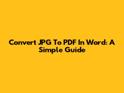 Convert JPG To PDF In Word: A Simple Guide