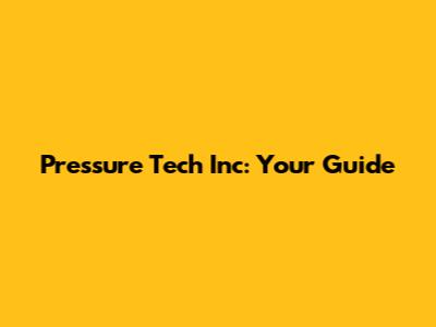 Pressure Tech Inc: Your Guide