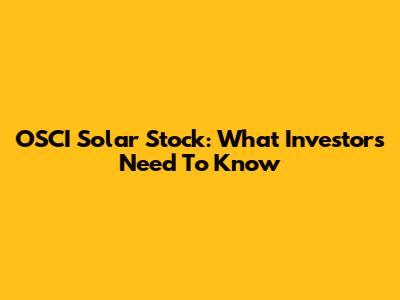 OSCI Solar Stock: What Investors Need To Know