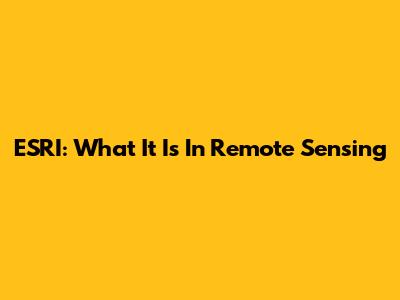 ESRI: What It Is In Remote Sensing