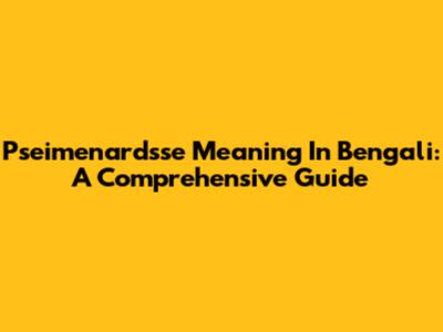 Pseimenardsse Meaning In Bengali: A Comprehensive Guide