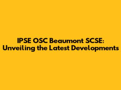 Recent Developments: The Latest News on IPSE OSC Beaumont SCSE