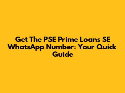Get The PSE Prime Loans SE WhatsApp Number: Your Quick Guide
