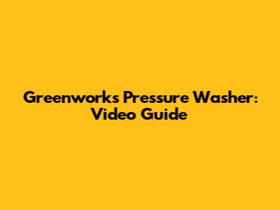 Greenworks Pressure Washer: Video Guide