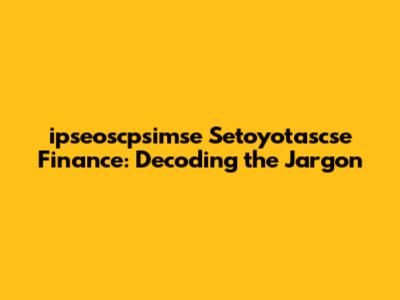 ipseoscpsimse Setoyotascse Finance: Decoding the Jargon