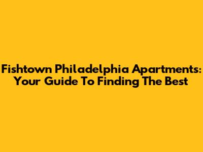 Fishtown Philadelphia Apartments: Your Guide To Finding The Best