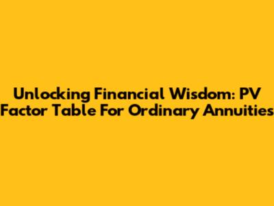 Unlocking Financial Wisdom: PV Factor Table For Ordinary Annuities