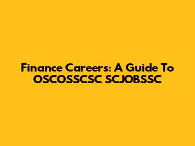 Finance Careers: A Guide To OSCOSSCSC SCJOBSSC