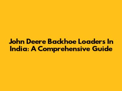 John Deere Backhoe Loaders In India: A Comprehensive Guide