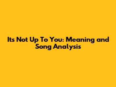 Alright, guys, let's dive deep into the heartfelt world of "It's Not Up To You"! This song, often celebrated for its raw emotion and poignant lyrics, really hits you right in the feels. We're going to break down the meaning behind the music, dissect the lyrics, and explore why this track resonates with so many of us. So, grab your headphones, maybe a tissue or two, and let's get started!
