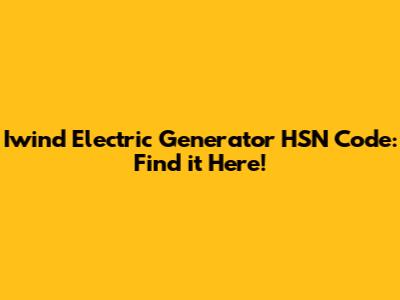 Hey guys! Ever found yourself scratching your head, trying to figure out the HSN code for an Iwind electric generator? You're not alone! Navigating the world of HSN codes can be a bit like trying to solve a Rubik's Cube blindfolded. But don't worry, I'm here to break it down for you in a way that's easy to understand and, dare I say, even a little bit fun. Let's dive in and get those codes sorted out! So, you're probably wondering, "What exactly is an HSN code anyway?" Well, it stands for Harmonized System of Nomenclature. Basically, it's a standardized system of names and numbers used worldwide to classify traded products. Think of it as a universal language for customs and tax authorities. Each product gets a unique code, making it easier to track and regulate international trade. Now, when it comes to electric generators, especially those from specific brands like Iwind, finding the right HSN code is crucial for several reasons. First off, it ensures that you're paying the correct amount of taxes and duties. Nobody wants to overpay, right? Secondly, it helps with smooth customs clearance, avoiding any unnecessary delays or complications. And finally, it keeps you compliant with import-export regulations, which is always a good thing. So, why is finding the HSN code for an Iwind electric generator sometimes tricky? Well, for starters, the classification of electric generators can vary depending on their specifications, such as power output, type of fuel used, and intended application. Plus, HSN codes are updated periodically, so what was correct a few years ago might not be accurate today.