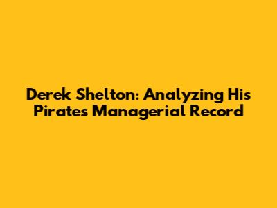 Derek Shelton: Analyzing His Pirates Managerial Record