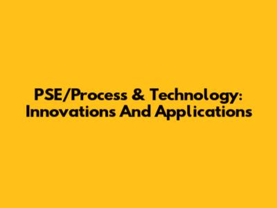PSE/Process & Technology: Innovations And Applications
