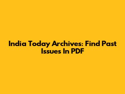 India Today Archives: Find Past Issues In PDF