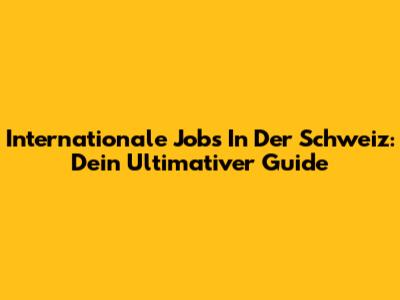 Internationale Jobs In Der Schweiz: Dein Ultimativer Guide