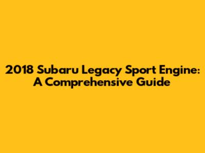 2018 Subaru Legacy Sport Engine: A Comprehensive Guide