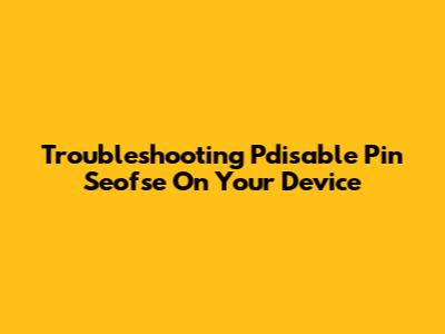 Troubleshooting Pdisable Pin Seofse On Your Device