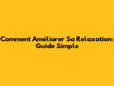 Comment Améliorer Sa Relaxation: Guide Simple