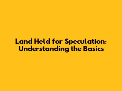 What Exactly is Land Held for Speculation?