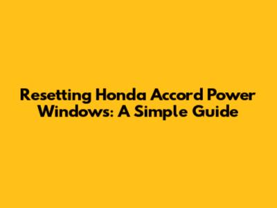 Resetting Honda Accord Power Windows: A Simple Guide