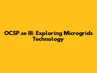 OCSP.se III: Exploring Microgrids Technology